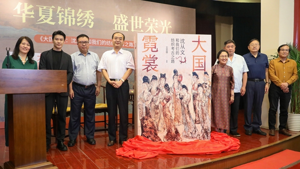 2023年8月9日,由人民文学出版社举办的“华夏锦绣 盛世荣光——《大国霓裳:沈从文和我们的纺织考古之路》新书发布会”在京举行。本书的编著者王亚蓉和出席发布会的嘉宾以及出版方代表,共同为新书揭幕。