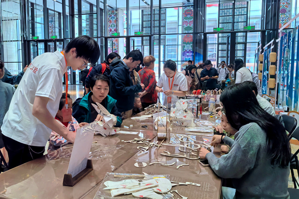 除互动体验活动外,中央大厅全天开展的泉州提线木偶表演更是让观众大饱眼福。舞台上,传承人指尖轻提细线,木偶灵动演绎出嫦娥在月宫俯瞰人间美景的片段,随着丝线起落,偶人服饰呈现四季变化,细腻的动作、鲜活的神态,让木偶仿佛拥有生命。