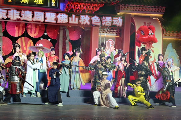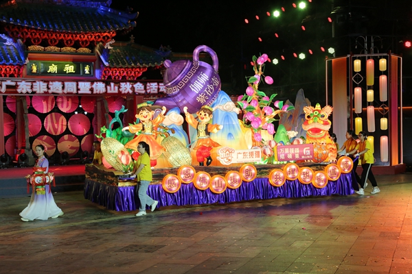 当晚,佛山秋色巡游同步启幕,将佛山金秋的喜庆氛围推向高潮。各国艺术团联同广东省内外、粤港澳大湾区、佛山对口支援和帮扶的地区及城市队伍,以及20辆绚丽多姿的主题彩车,从佛山祖庙牌坊广场前出发,按照环形路线行进,途经莲花路、福贤路、建新路、百花广场等中心城区地标,带来55项表演节目,在近150分钟的巡游时间里,与游客进行了全长3.3公里的巡游互动。