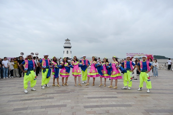 当日下午,埃及亚历山大胡里亚民间艺术团还亮相珠海爱情邮局,为市民献上舞蹈表演《亚历山大风情》。演员们随着明快的鼓点舒展肢体,展现出地中海沿岸的热烈与灵动。在场市民或驻足观赏,或举起手机记录,海浪声与掌声交织,让这场跨越山海的文化表演,成为一道充满活力的独特风景。