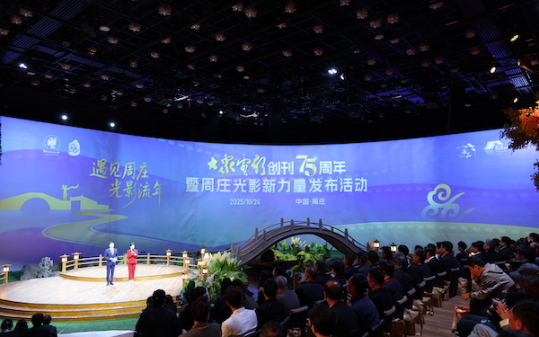 10月24日,“大众电影创刊75周年暨周庄光影新力量发布活动”在江苏昆山周庄古镇举行。本次活动由《大众电影》杂志社、昆山市周庄双桥电影制片有限公司联合主办,以“遇见周庄 光影流年”为主题,汇聚全国影视行业、文化机构、媒体界的250余位嘉宾,共同见证中国电影文化的传承与创新,为周庄影视文旅产业发展注入新动能。