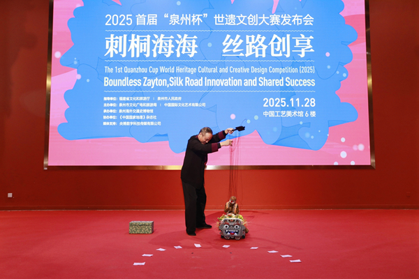 11月28日,2025首届“泉州杯”世界文化遗产文创大赛发布会暨启动仪式在中国非物质文化遗产馆举办。大赛由福建省文化和旅游厅、泉州市人民政府指导,泉州市文化广电和旅游局主办,福建省泉州海外交通史博物馆承办。活动以中国非物质文化遗产馆的“气象万千——中国非遗保护实践主题展”为场景,将发布内容与实物展品、文化场景深度融合,构建“看展+发布”的创新模式,推动非遗的活态传播。