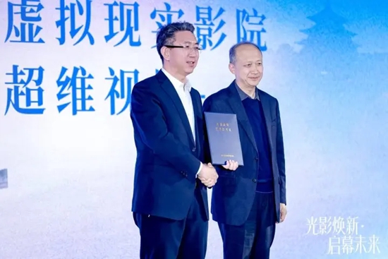 发布会上,备受行业关注的国内首家虚拟现实影院——798超维视界正式对外启用。798超维视界配备了国际领先的虚拟现实设备与内容分发系统,让观众摆脱“旁观者”的身份限制,以“参与者”的视角深度融入影片剧情,实现与角色、场景的实时互动。