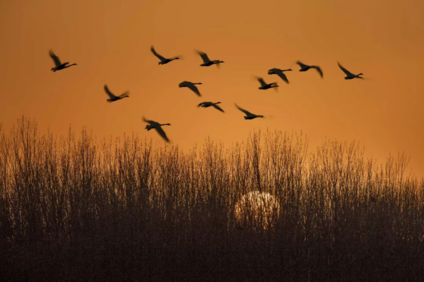 《东天山驼队与三门峡天鹅同框》 徐波 摄