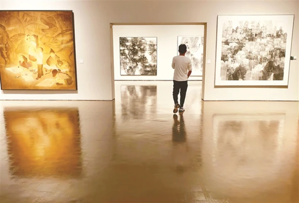 由上海市文联、上海市美协、上海美术馆联合主办的第十三届上海美术大展近日在上海美术馆(中华艺术宫)对公众开放。本次大展入选作品包括中国画、油画、版画、雕塑、实验艺术、数字艺术、建筑艺术、公共艺术等18个类别,题材丰富、风格多样。展出作品包括入选作品、特邀艺术家及总评委作品共计601件,为历届规模最大。图为展览现场。中新社发 周东潮 摄
