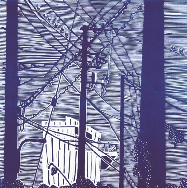 参展小作者王梓涵是第一次参加这样的美术展览,收到入选通知时既惊讶又开心。她的参展作品是一幅蓝色油墨印制的木刻《我站在楼上看风景》,画中窗外的电线杆与洁白的房屋,是她心灵放松的窗口。“这是我站在楼上眺望远方的画面,这种感觉让我非常惬意、放松,让我可以在繁忙的学习中调整身心,让学习精力更充沛。我很喜欢蓝色,它让我有一种很放松的感觉。”王梓涵的话,道出了艺术创作对于孩子们的独特意义。