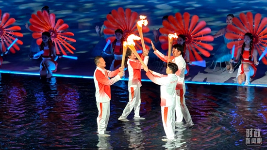 第十五届全运会主火炬点燃环节。(总台央视记者范一鸣、蒋硕拍摄)