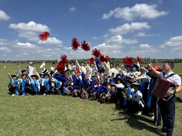 2025年8月15日至17日,强基工程——“村歌嘹亮”2025年全国集中展演在内蒙古鄂尔多斯举行。图为小分队演出现场(图源:中国文艺志愿者微信公众号)