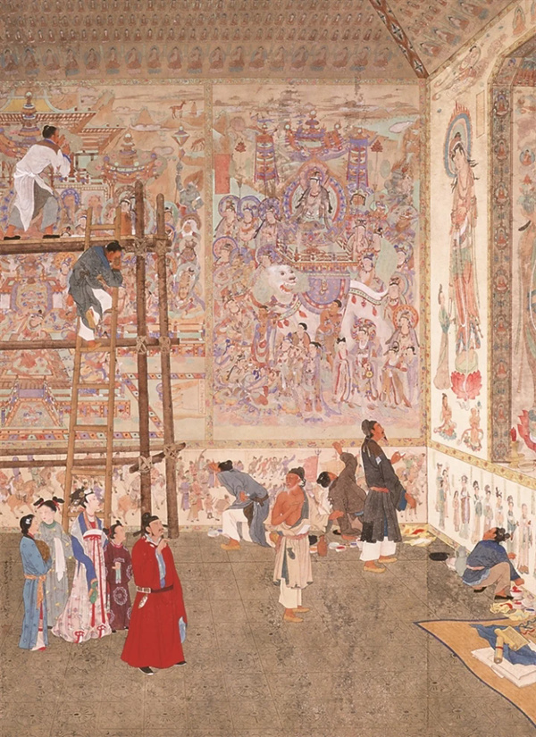 潘絜兹的美学思想形成于敦煌。20世纪50年代,他创作了《石窟艺术的创造者》,生动展现了古代画师艺术创作的动人一幕,也留下了工笔画家画工笔画家的佳话。“抗战时期独自从兰州前往敦煌,对潘先生的一生影响非常大。”中国画学会顾问孙克说。作为中国现代著名画家,潘絜兹早年投身救亡图存的艺术实践,后又以深厚学养与治学精神参与中央美术学院的建设与发展。他一生倡导民族艺术传统的创造性转化,强调胸怀时代、融通中西,对中国传统工笔重彩绘画的研究以及敦煌学的发展作出了重要贡献。