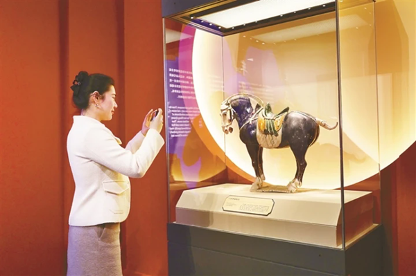 1月30日,在丙午马年新春即将到来之际,由中国国家博物馆主办,甘肃省博物馆、甘肃简牍博物馆、秦始皇帝陵博物院、陕西省考古研究院(陕西考古博物馆)、青州市博物馆、绵阳市博物馆支持的“跃马扬鞭——马年新春文化展”向公众展出,展期三个月。此次展览遴选与马相关的精品文物120余件/套,通过“良驹伴文明”“车马昭礼制”“鞍辔有工巧”“蹄声通万里”“神骏绘流年”5个单元,全方位、多角度展示马在中华文明长卷中的千姿百态,生动阐释马在中华文化中的深厚内涵和时代价值。值得一提的是,展出的三彩黑釉陶马除面、鬃、尾、蹄涂白釉外,全身披黑釉,这在唐三彩中实属罕见。围绕这匹“黑马”,国博推出玩偶、背包、盲盒、冰箱贴、台历、项链等文创产品,以此祝愿观众在新的一年万事顺遂、马到成功。
