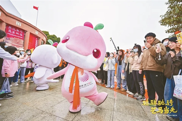 “骐骥驰骋 ‘艺’马当先”2026广州市文艺迎春百场活动日前在广州人民艺术中心启幕。造型独特的鳌鱼舞、趣味横生的鸡公榄、全运会吉祥物“大湾鸡”闪亮登场,共同为广大市民送上新春祝福。