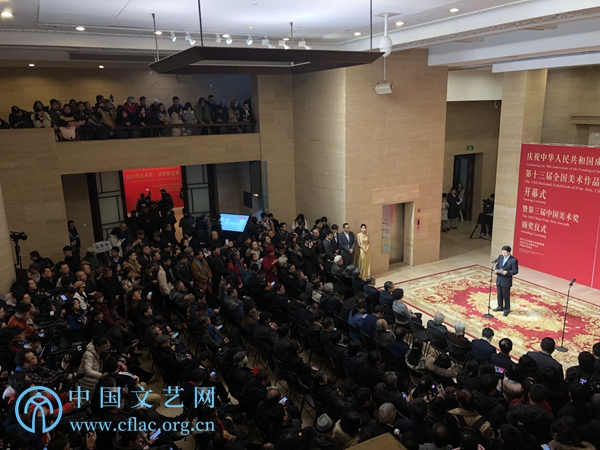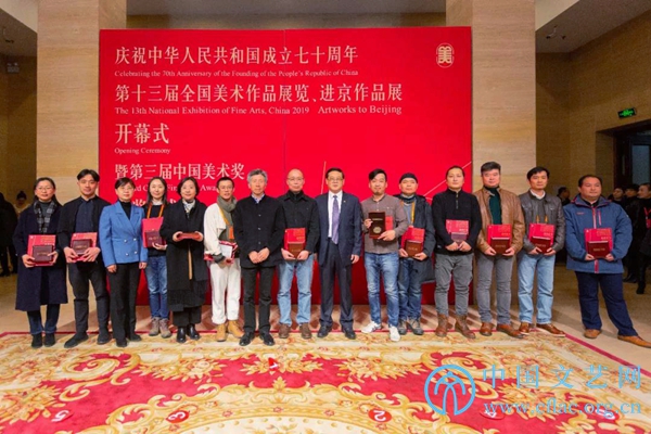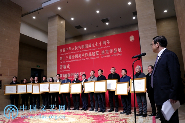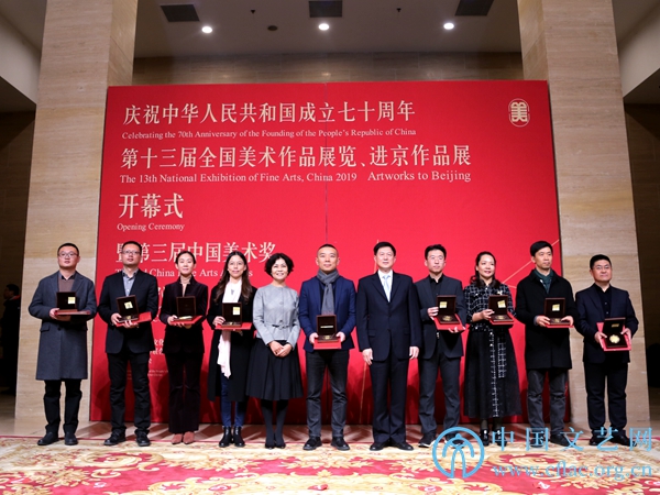 12月20日,由文化和旅游部、中国文联、中国美协共同主办的“庆祝中华人民共和国成立七十周年——第十三届全国美术作品展览暨第三届中国美术奖、进京作品展”在中国美术馆开幕。