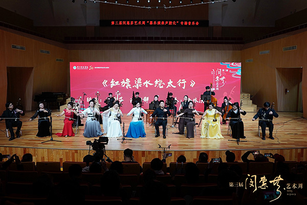 艺术周期间举办的弘毅之光:“此曲只应天上有”——《长城随想》讲述式音乐会由刘光宇主讲,特邀嘉宾刘振学、朱昌耀演奏《长城随想》第一、二乐章,刘光宇演奏《长城随想》第三、四乐章。通过边讲边拉、讲演结合、视听并举、赏析拾味,深入闵惠芬音乐的典范性、时代性、声腔化、人民性。“器乐声腔化”音乐会上,《迷胡调》《逍遥津》《忆秦娥》《寒鸦戏水》《游园》《昭君出塞》《红旗渠水绕太行》等经典作品与《巾帼》《苏园》等新创作品交相辉映,让观众聆听中国民族音乐的血脉传承。